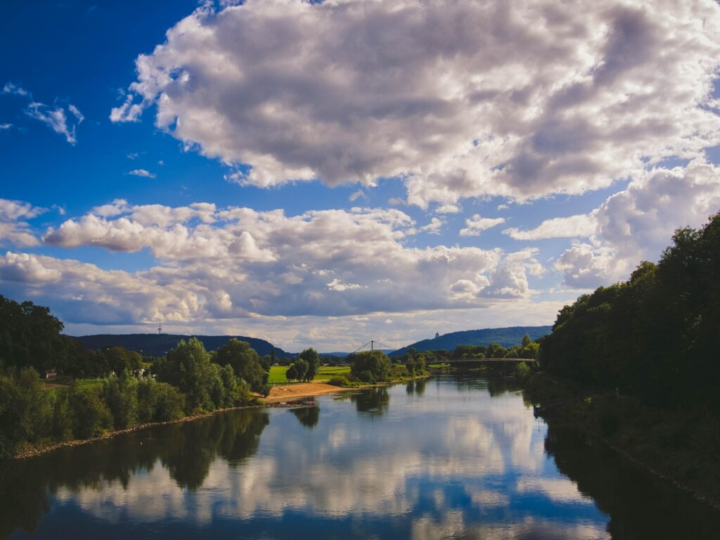 Willkommen am Weserstein in dem wunderschönen Hann Münden. Dem faszinierenden Ort, an dem sich die Flüsse Fulda und Werra vereinen und gemeinsam die Weser bilden. Dieser magische Ort lädt dich ein, die Schönheit der Natur zu erleben und die symbolische Verschmelzung zweier Flüsse zu bezeugen.